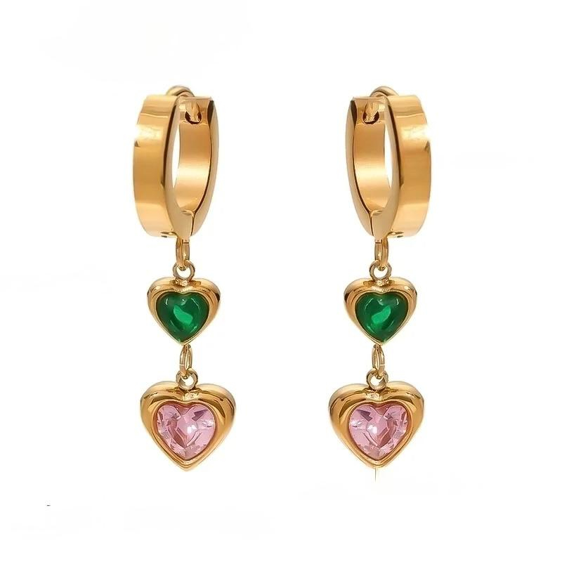 Delicați, jucăuși și romantici, cerceii Double Heart în nuanță verde-roz combină forma grațioasă a două inimi lungi cu un design modern și feminin. Lungimea lor elegantă creează un efect vizual alungit și adaugă un aer de delicatețe și rafinament ținutei tale.
