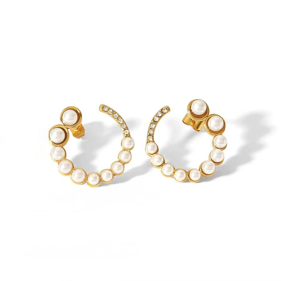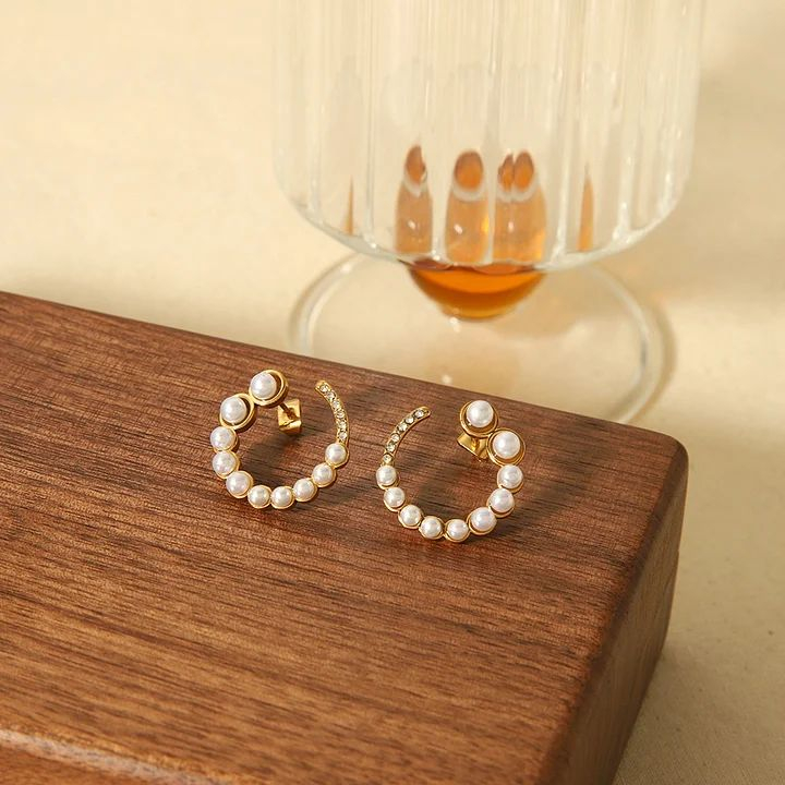 Realizați din oțel inoxidabil placat cu aur, acești cercei sunt hipoalergenici, rezistenți la uzură și confortabili de purtat. Detaliile atent lucrate și combinația de perle și cristale îi transformă într-un accesoriu de impact, ideal pentru orice ocazie specială sau ținută chic.