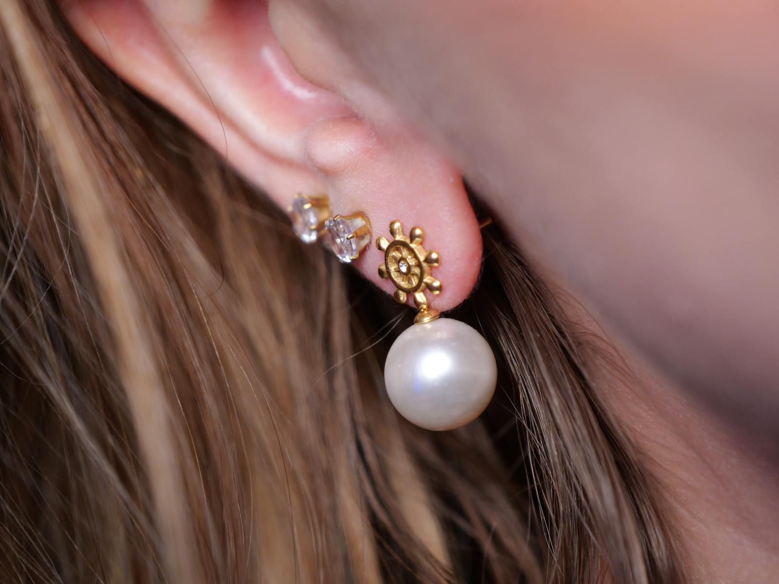 Realizați din oțel inoxidabil placat cu aur, sunt hipoalergenici, rezistenți la apă și își păstrează strălucirea chiar și în zilele toride de plajă. Designul lor unic, cu formă de timonă marină, evocă spiritul aventuros al călătoriilor și al mării, adăugând o notă jucăușă și elegantă oricărei ținute estivale.