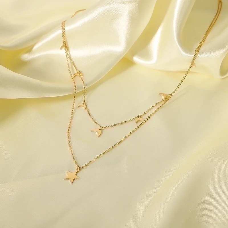 Un accesoriu statement care emană stil și rafinament, colierul Celestial Glow aduce magia cerului nopții aproape de tine. Pandantivul delicat cu formă de lună și stele strălucitoare creează un efect vizual fermecător, adăugând un strop de eleganță și romantism oricărei ținute.