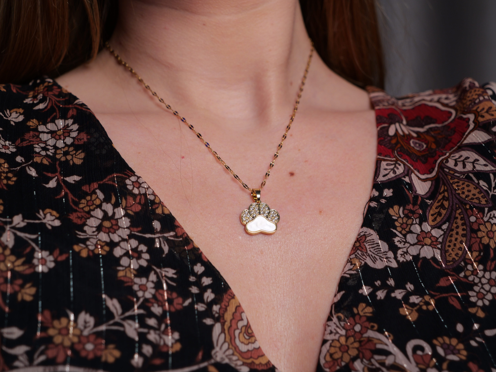 Arată-ți dragostea pentru animale cu acest colier adorabil decorat cu o lăbuță delicată. Realizat din oțel inoxidabil hipoalergenic, colierul este confortabil și sigur pentru purtare zilnică, adăugând un accent jucăuș și elegant oricărei ținute. Perfect pentru iubitorii de animale care vor să poarte o bijuterie cu semnificație.