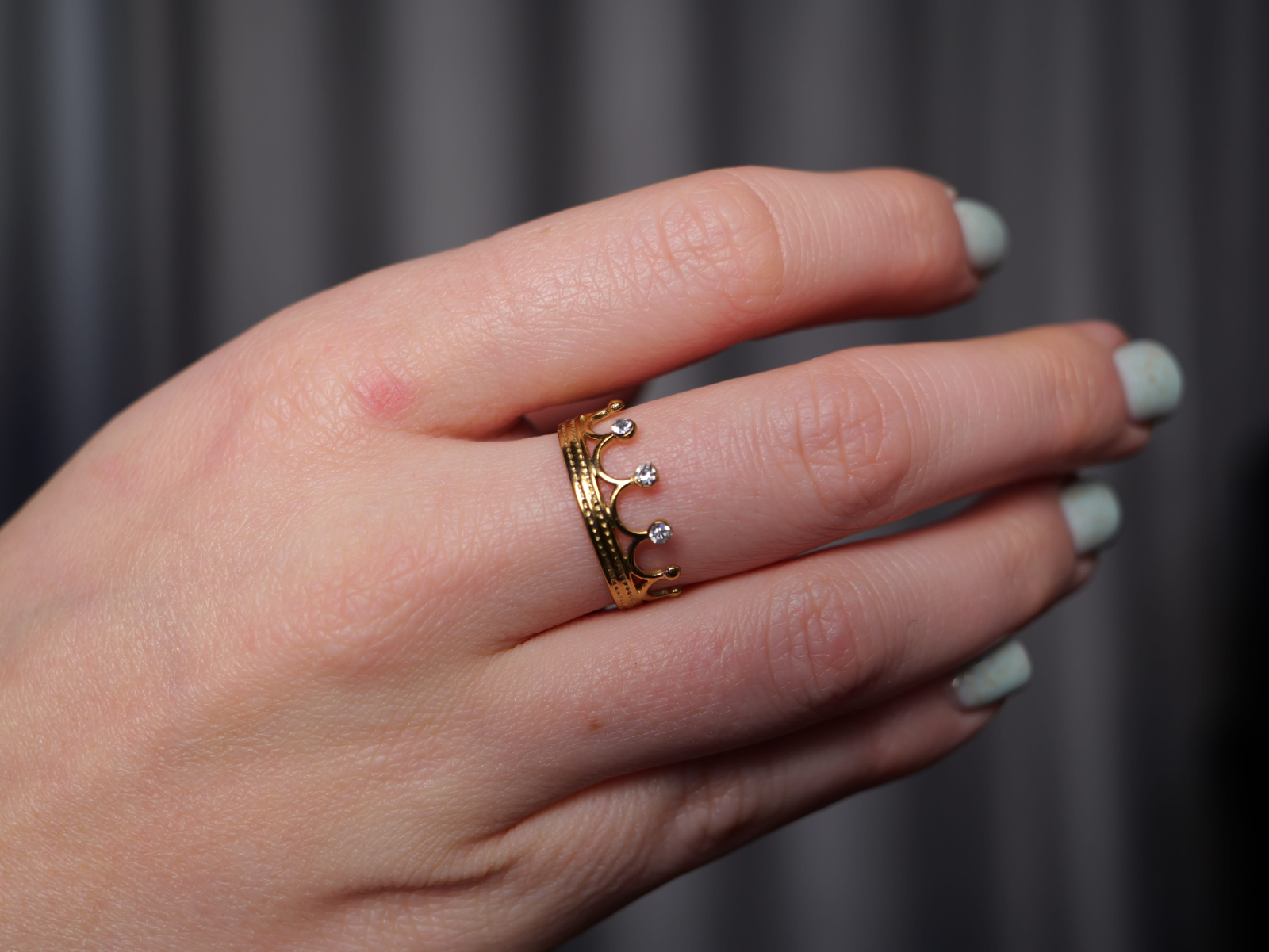 Simte-te ca o regină în fiecare zi cu acest inel rafinat în formă de coroană, împodobit cu cristale strălucitoare ce captează și reflectă lumina din orice unghi. Designul său regal adaugă un plus de eleganță și personalitate, completând cu farmec atât ținutele de zi, cât și cele de seară.