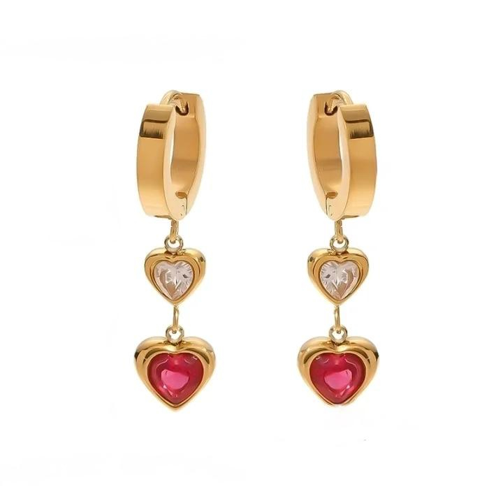 Delicați, jucăuși și romantici, cerceii Double Heart în nuanță roșie combină forma grațioasă a două inimi lungi cu un design modern și feminin. Lungimea lor elegantă creează un efect vizual alungit și adaugă un aer de delicatețe și rafinament ținutei tale.