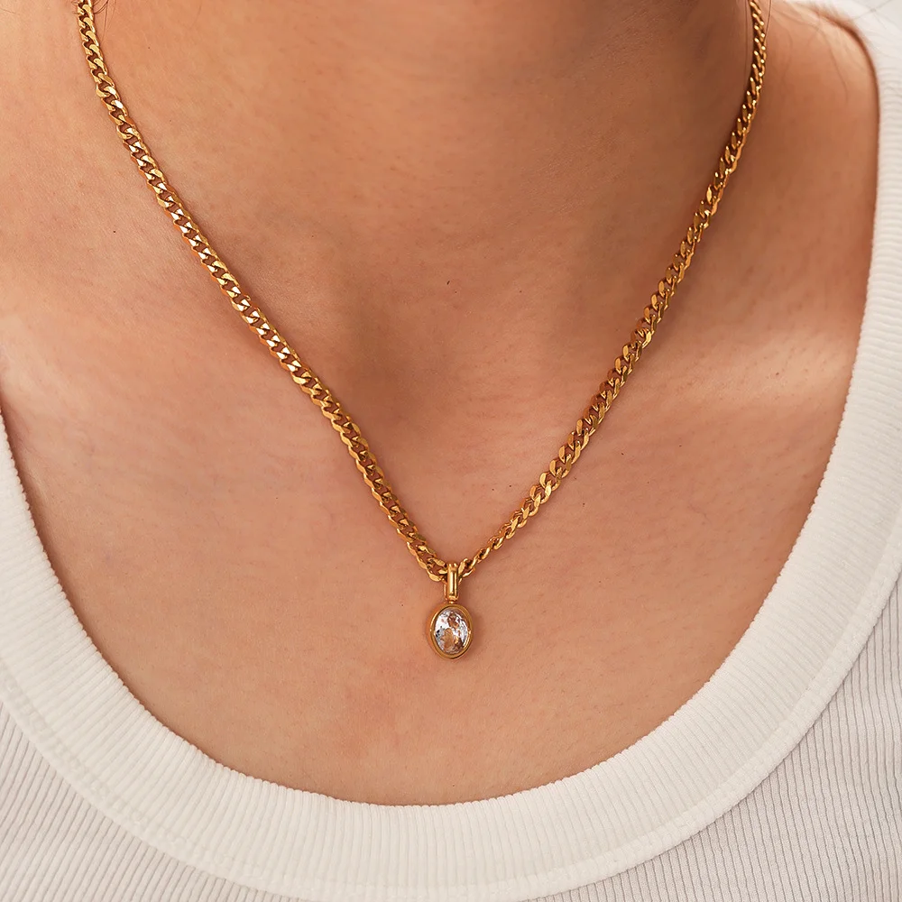 Realizat din oțel inoxidabil placat cu aur, colierul este rezistent la apă, oxidare și uzură, fiind alegerea ideală pentru femeile care iubesc bijuteriile fashion cu un design elegant și rafinat.
