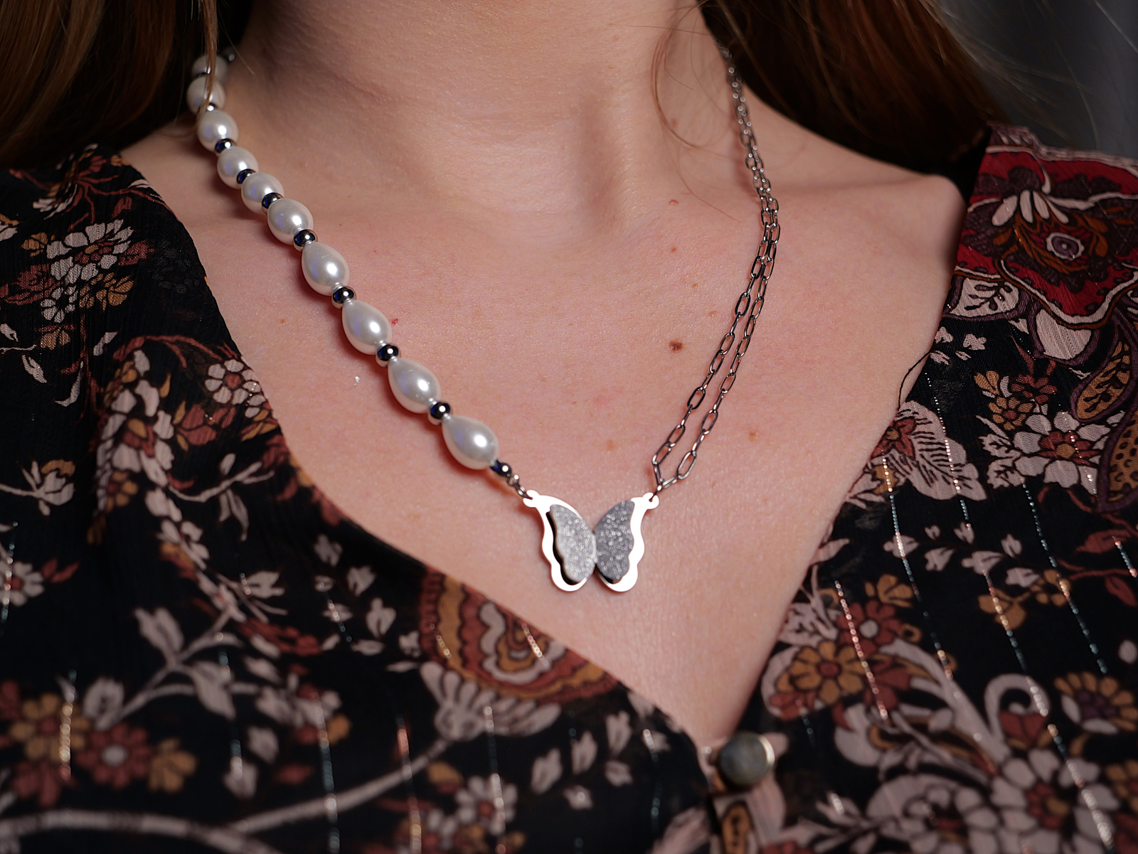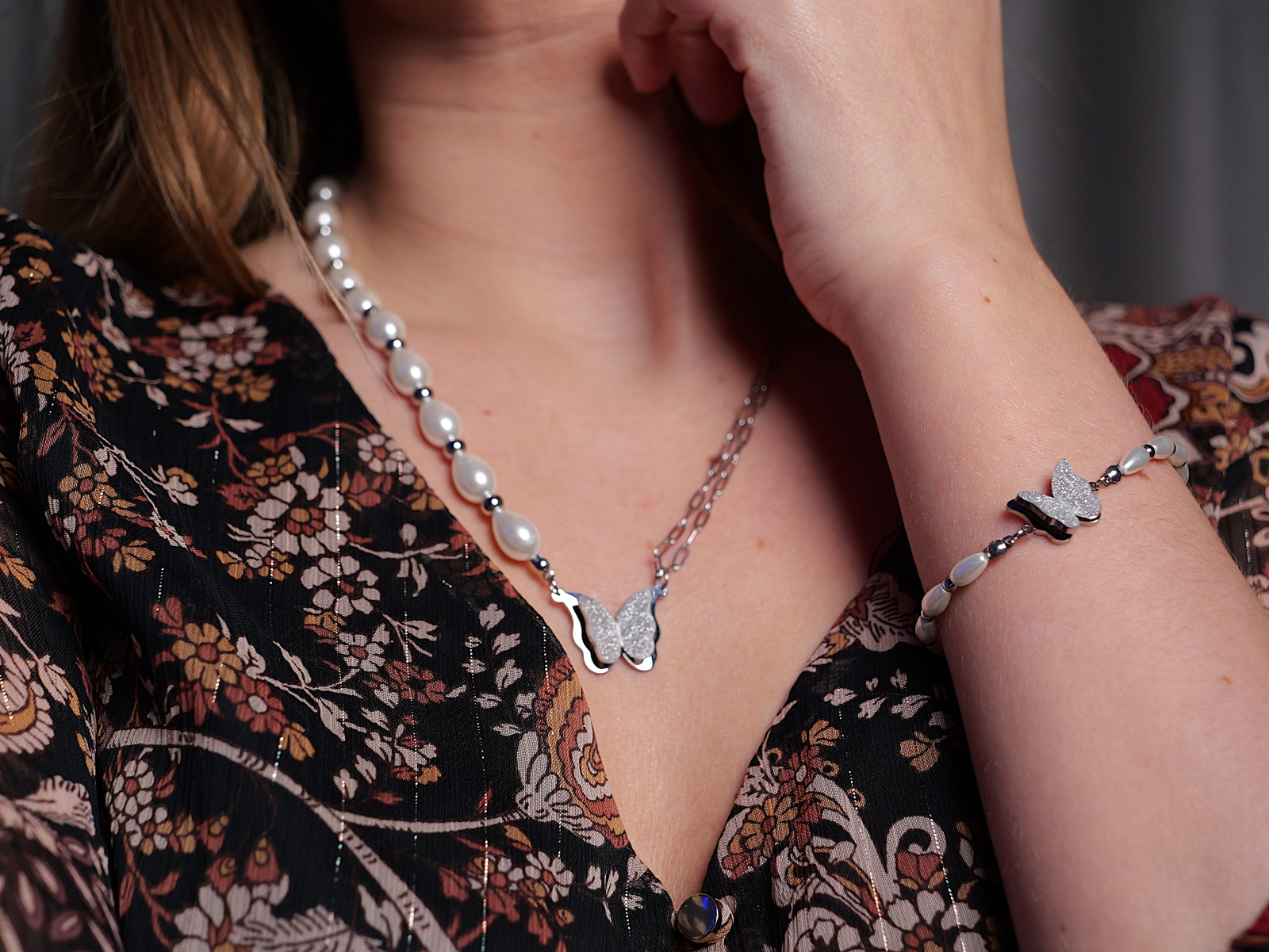Realizat din oțel inoxidabil hipoalergenic, setul este rezistent la uzură, nu își schimbă culoarea și este potrivit chiar și pentru pielea sensibilă. Designul său delicat îmbină eleganța clasică a perlelor cu un aer modern și romantic, fiind ideal atât pentru ținute de zi, cât și pentru ocazii speciale.